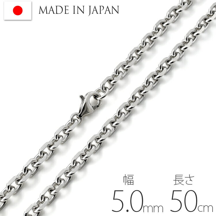 ネックレス チェーン【幅5.0mm 長さ50cm】サージカルステンレス製 極太幅 4面カットあずきチェーン 小豆 金属アレルギー対応 316L 日本製 レディース メンズ 男女兼用