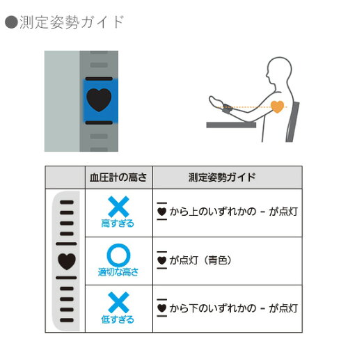 また、測定姿勢ガイドによって血圧計の位置を正しい位置へとサポート。